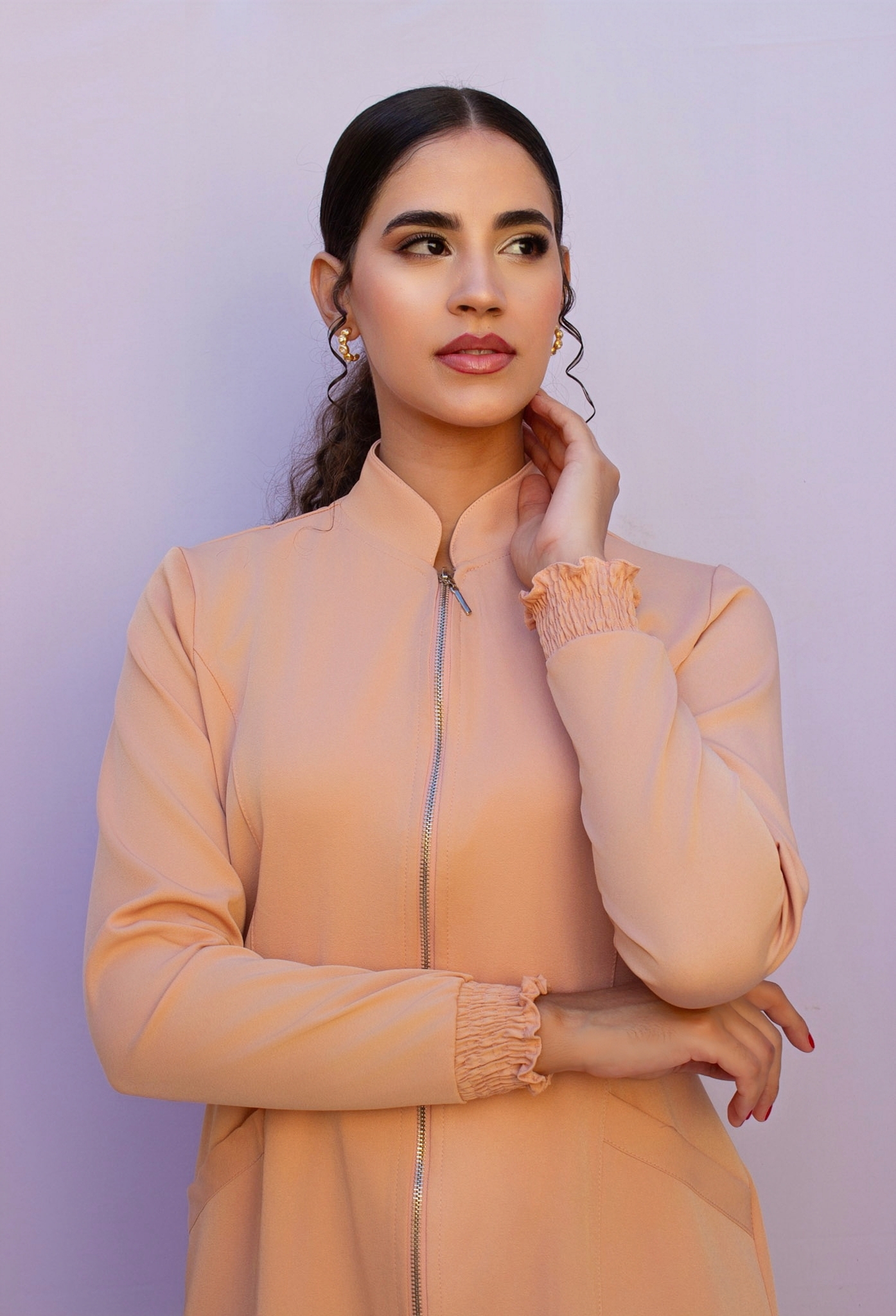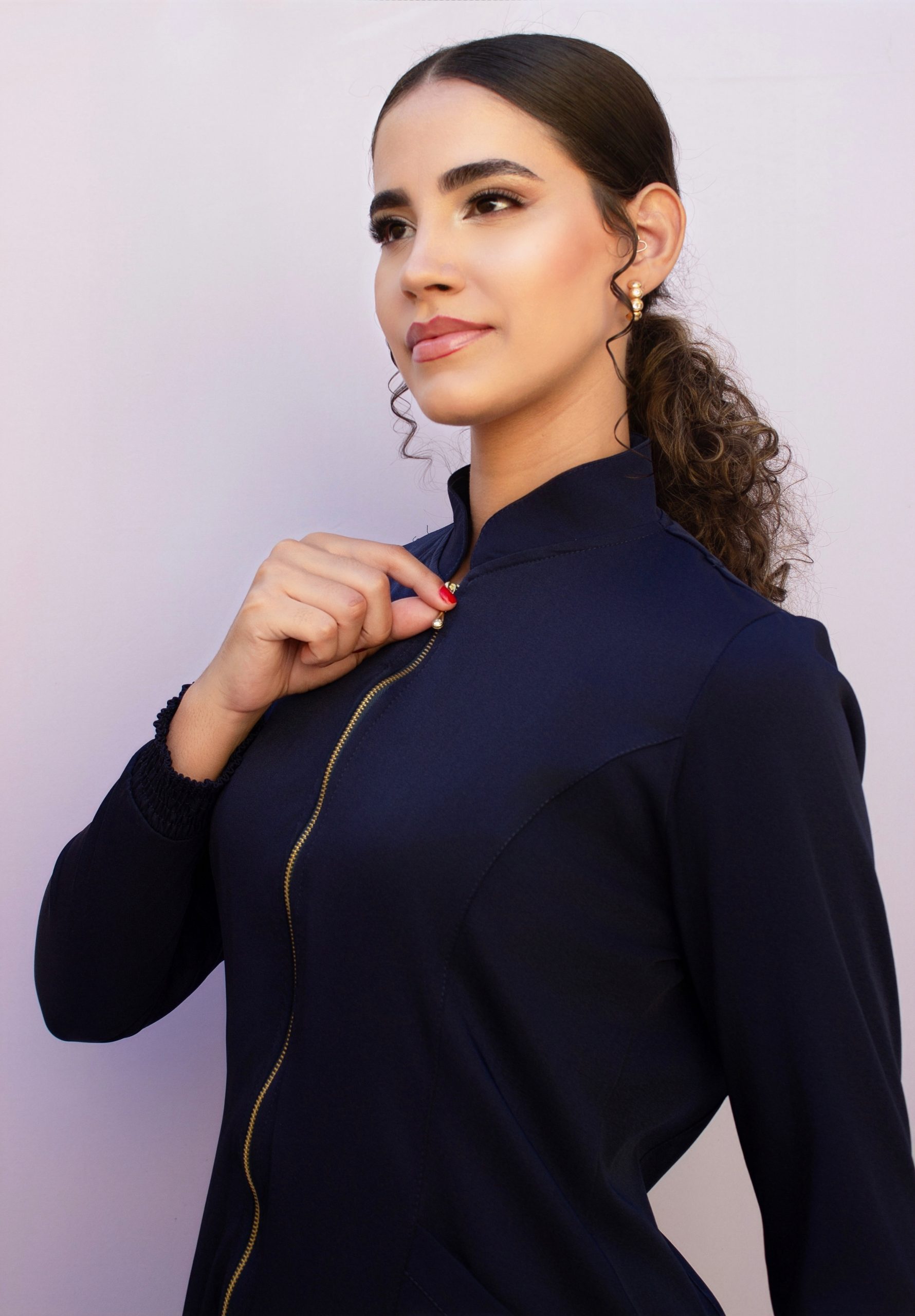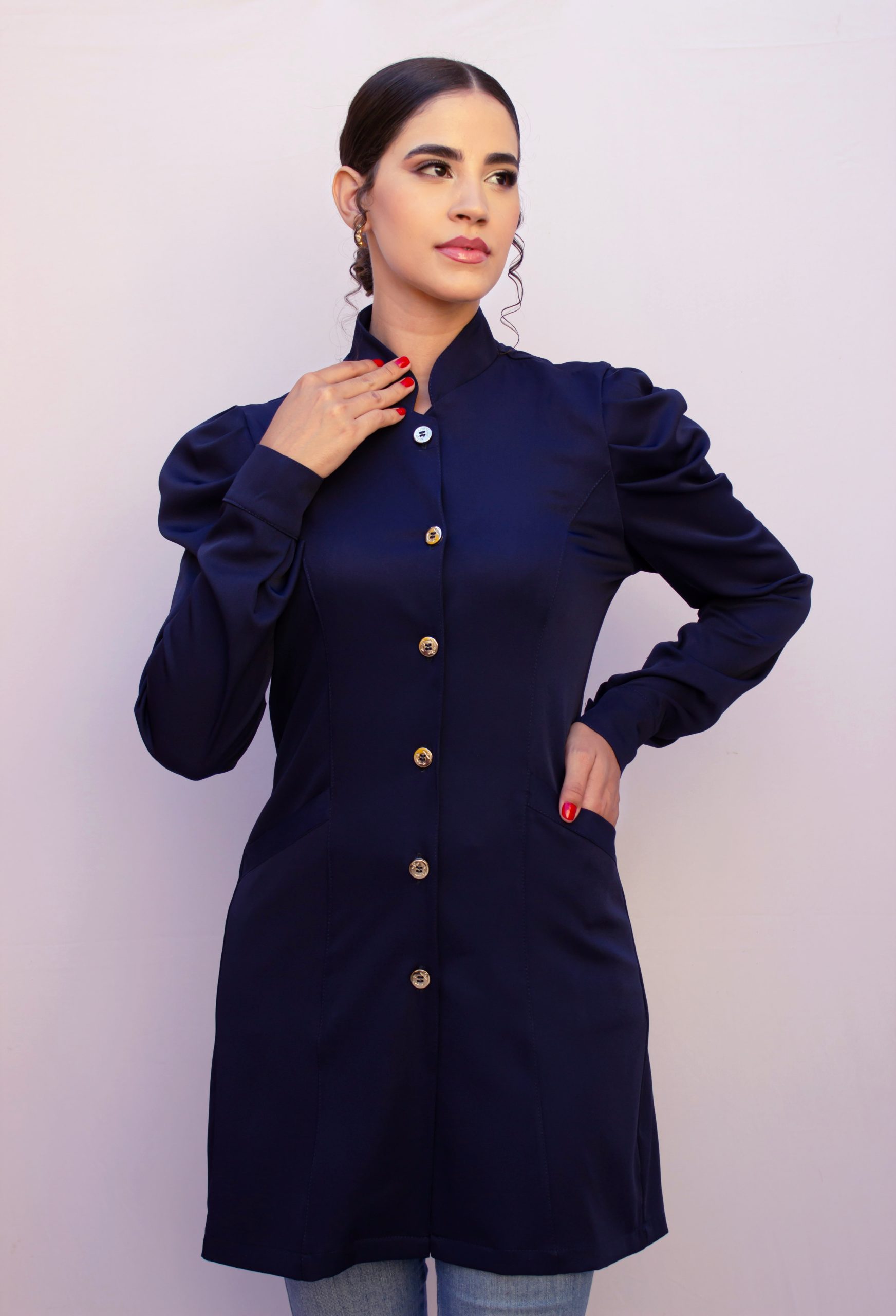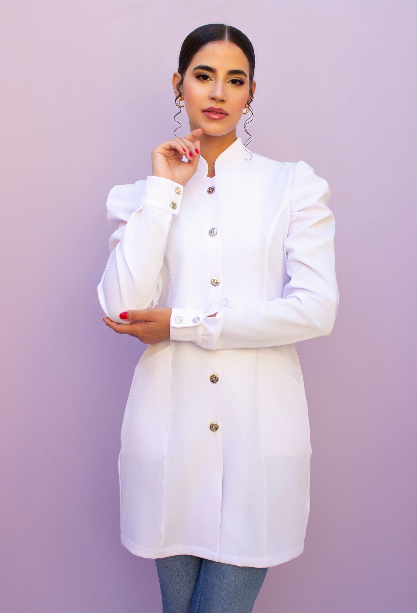 Jaleco Femininio com Gola Padre, Manga comprida bufante, e Botões Fontais.